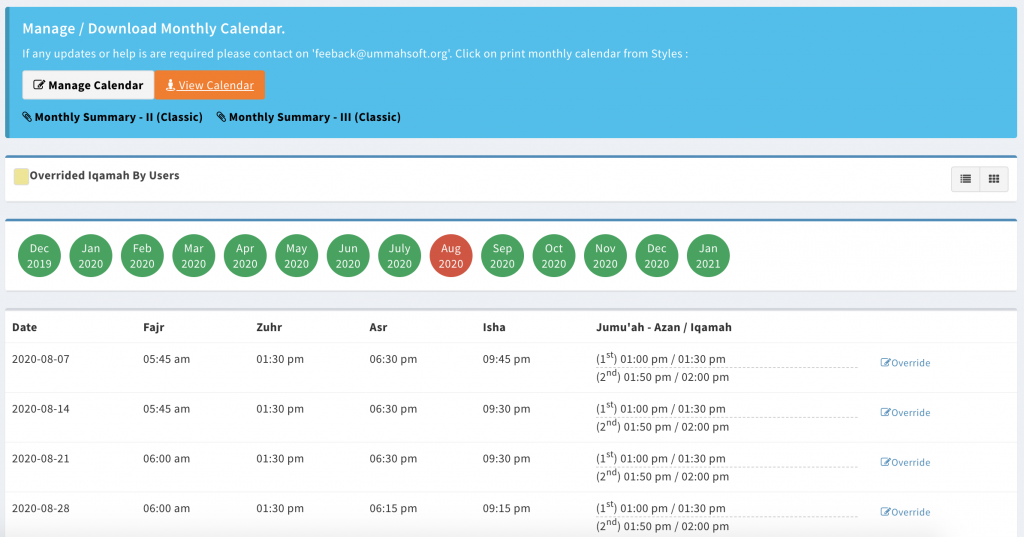 Iqamah times: Tools to manage Iqamah times for the masjid